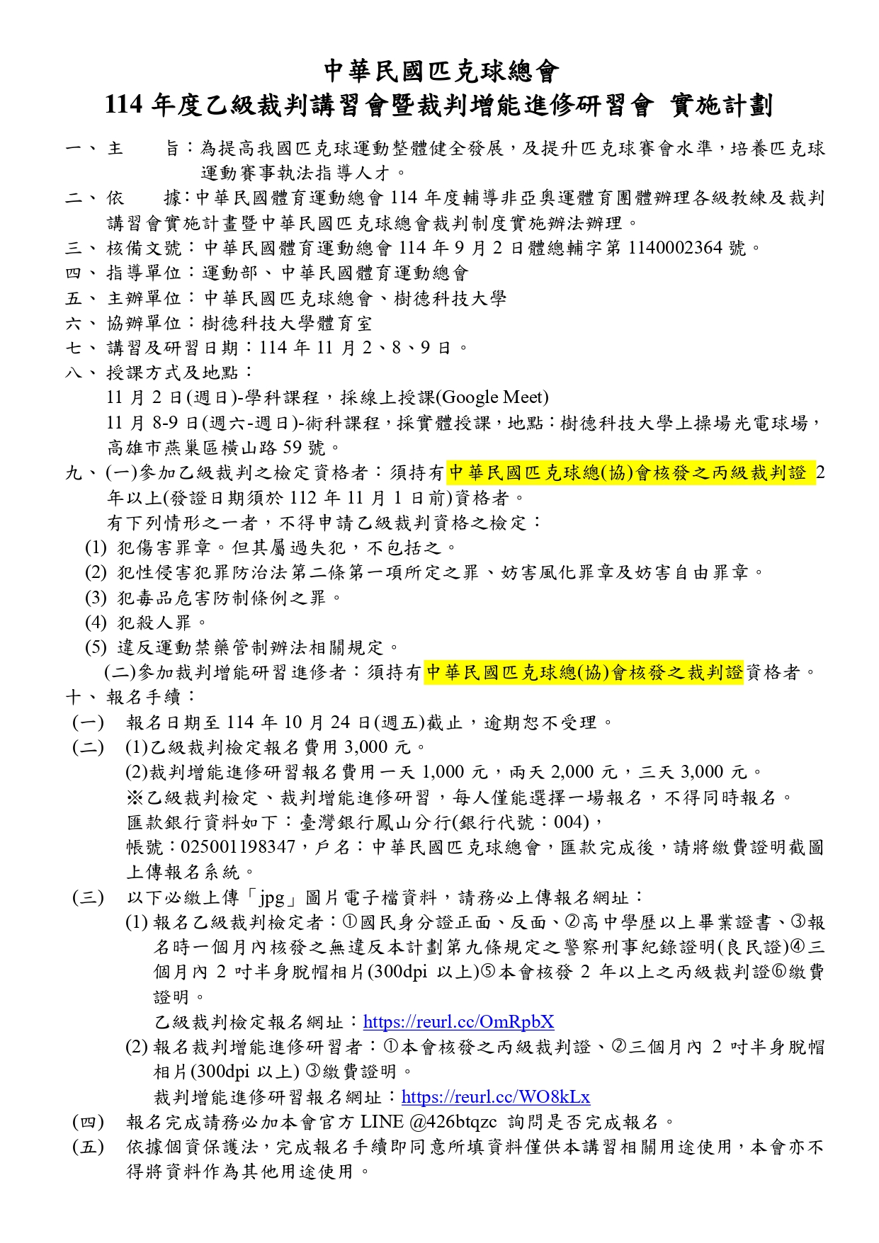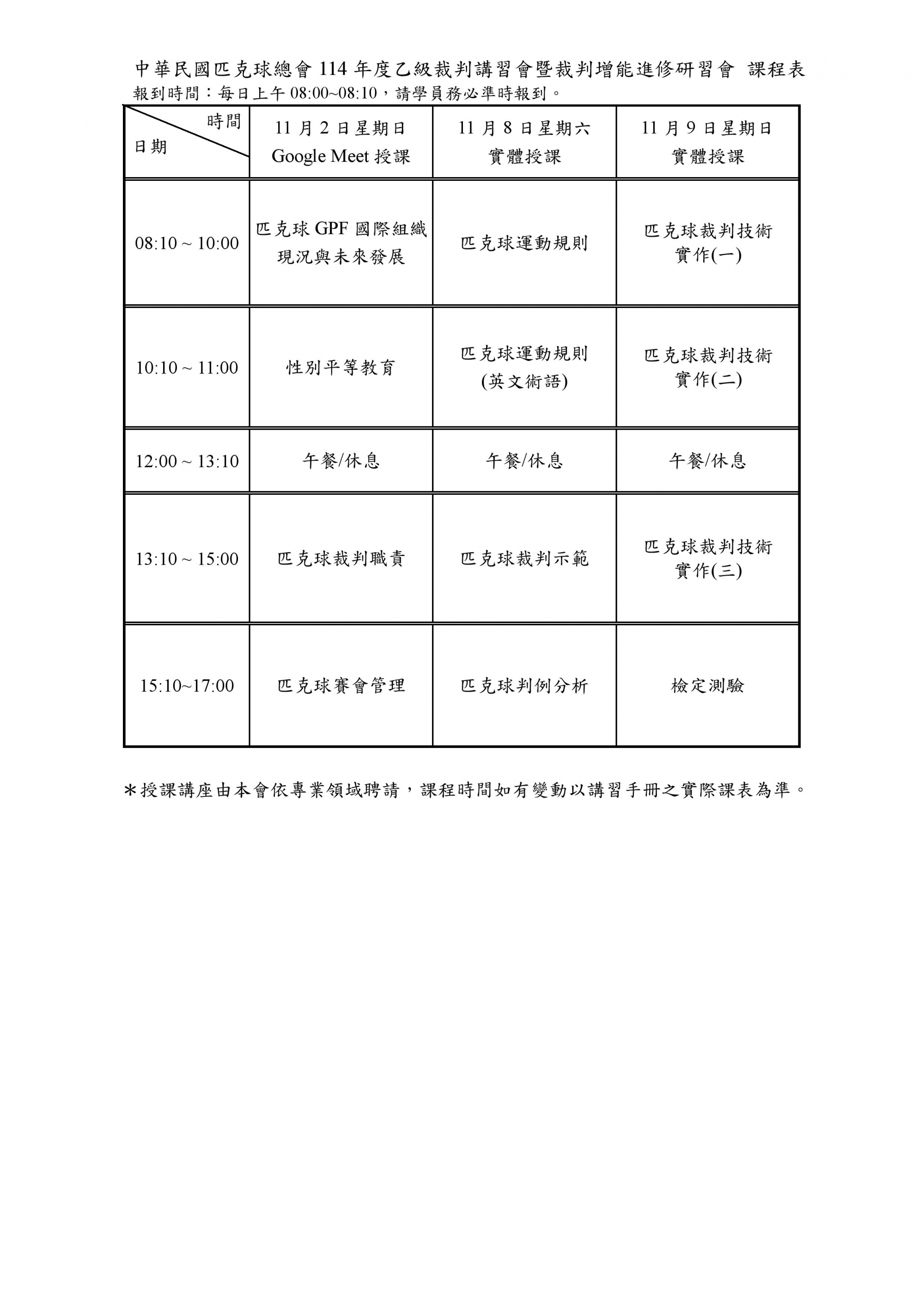 114年乙級匹克球裁判講習會暨裁判增能研習進修