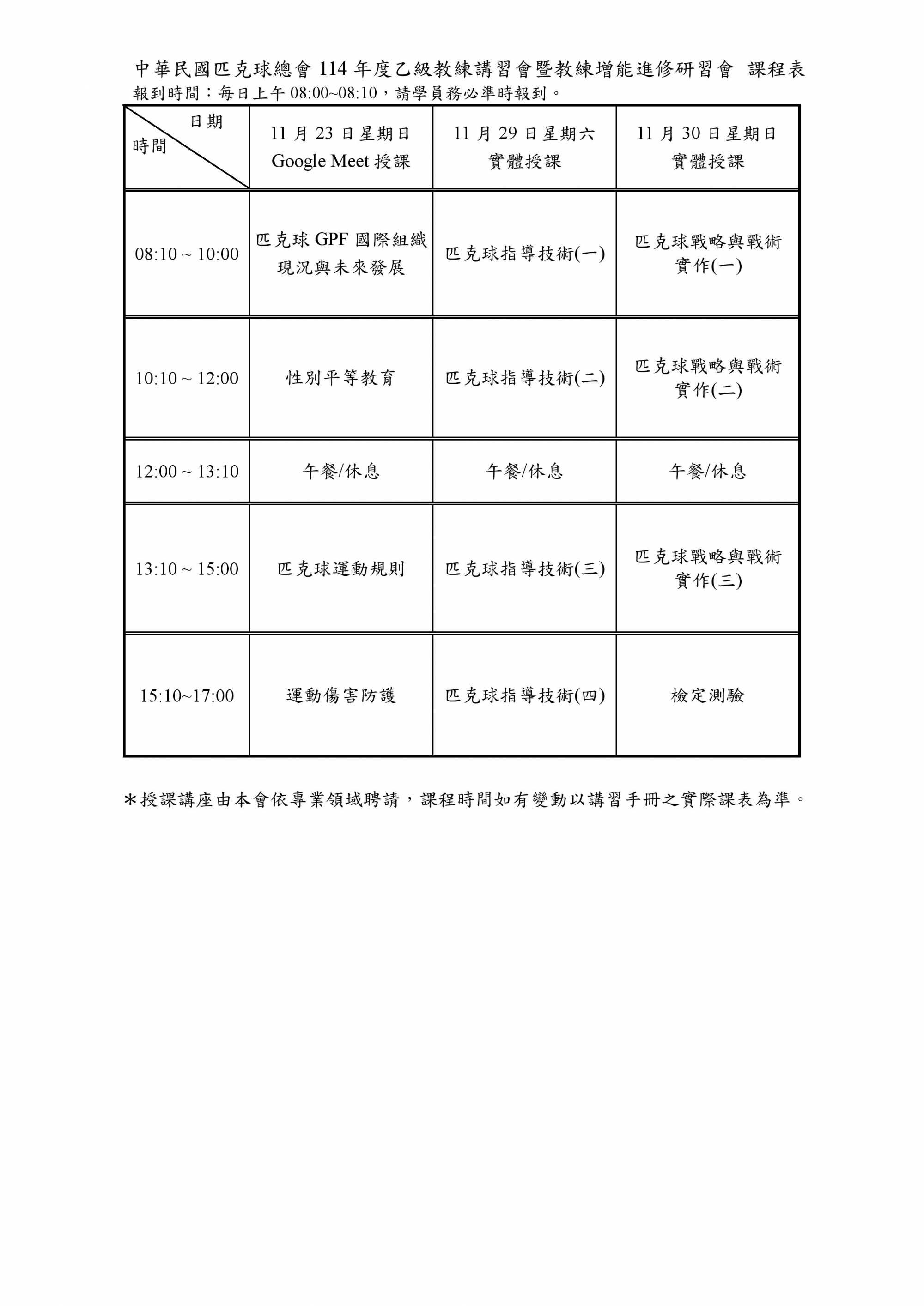 114年乙級匹克球教練講習會暨教練增能研習進修