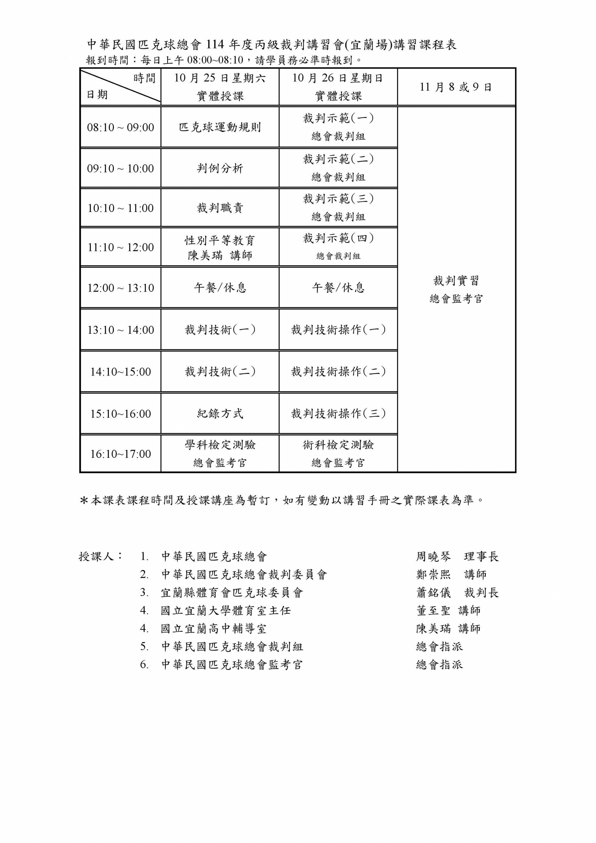 講習日期10/25-26(學術科)、11/8-9(裁判實習,選1天)