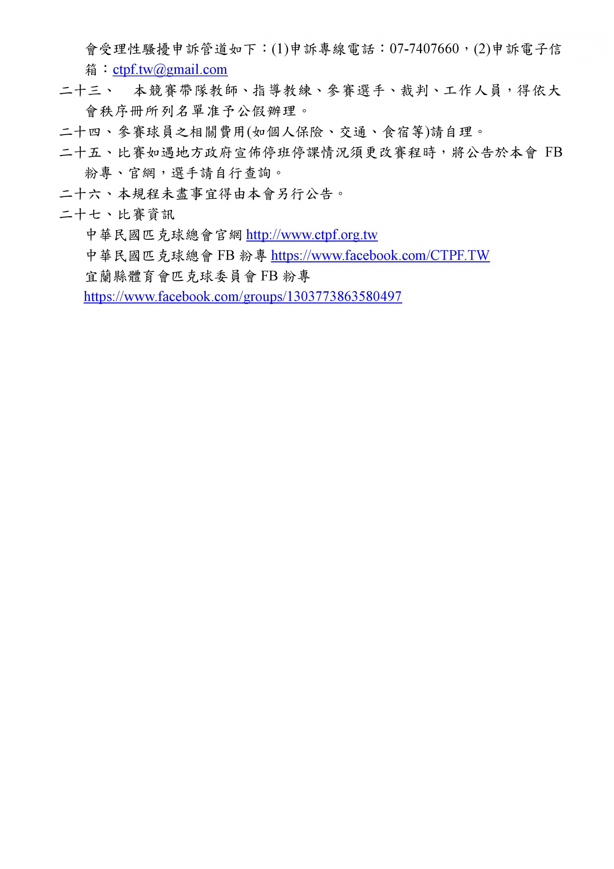 宜蘭縣體育會匹克球委員會FB粉專 https://www.facebook.com/groups/1303773863580497